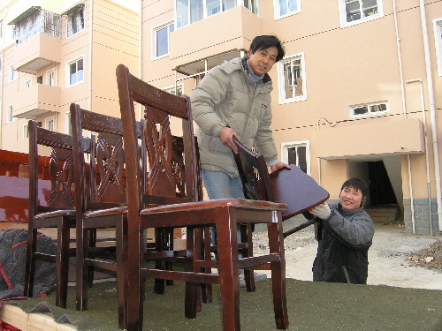 2008年元旦一大早,潘村湖农场三分场职工王少叶和家人一道将家具搬进位于场部高岗地带宽敞明亮的新居。