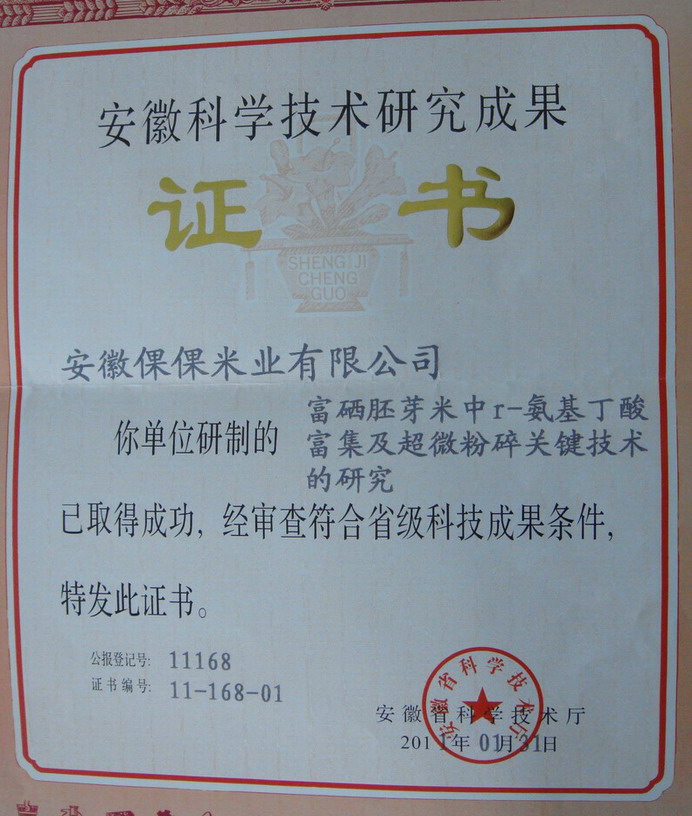 近日,由安徽农垦倮倮米业与安徽农业大学合作研发的“富硒胚芽米中γ-氨基丁酸富集及超微粉碎关键技术的研究”获得省科学技术厅颁发的科技成果证书。此项科技成果的取得,为倮倮米业富硒胚芽米产业化生产打下了坚实的基础。