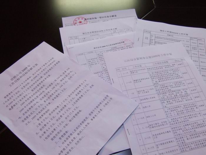 按照集团公司《关于分解2009年工作任务的通知》(垦集办〔2009〕4号)要求,潘村湖农场日前在全场开展了制定2009年工作目标和分解2009年重点工作任务活动。全场各单位通过召开班子会议、职工代表会议等不同形式,围绕全年重点工作定目标、定利润、拿举措。尤其是各农业单位均明确了本分场今年小麦单产及保种数量。全场各单位按规定时间上报了全年工作计划和具体措施办法。从上报的材料来看,形式多样、内容丰富、目标具体、办法可行、责任明确。