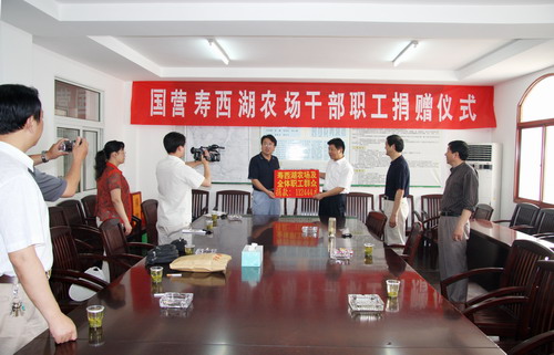 寿西湖农场首批赈灾捐款汇往四川灾区