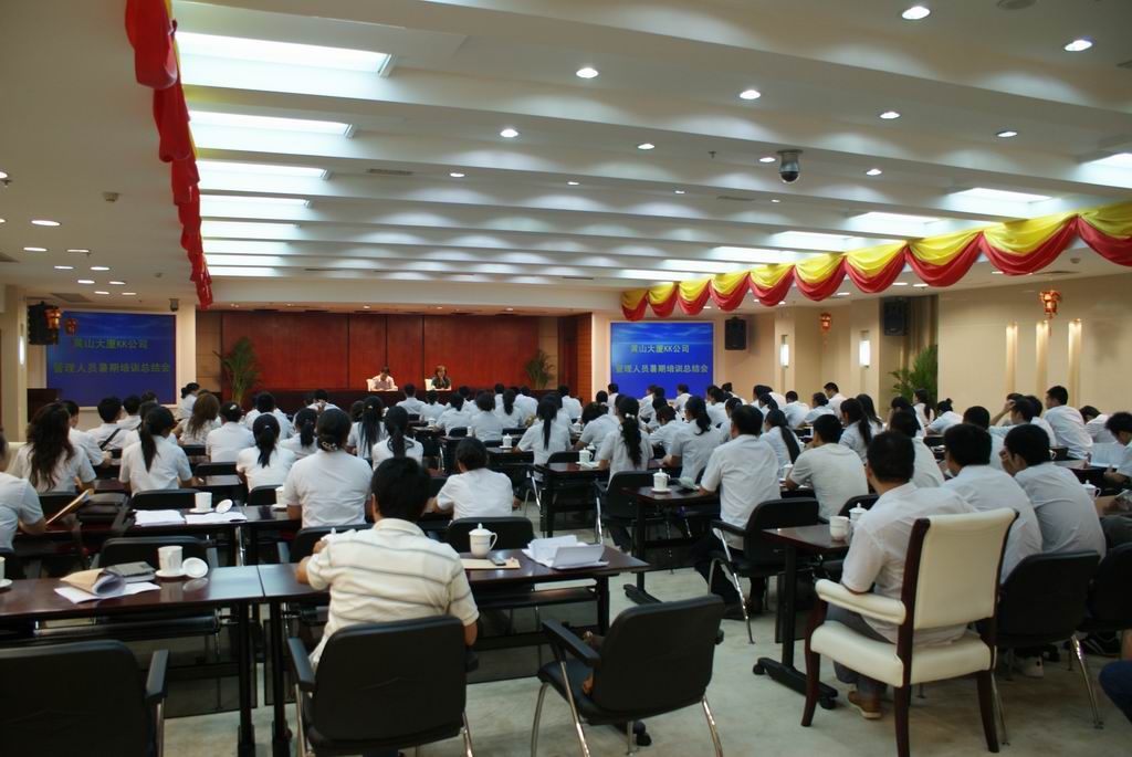——为提高管理人员综合素质、激发员工工作动力、搭建学习型、知识型企业平台,黄山大厦KK公司于72131在安徽日报报业大酒店举行了为期十一天的2009年度暑期培训活动。KK公司近两百名管理人员参加了此次培训。