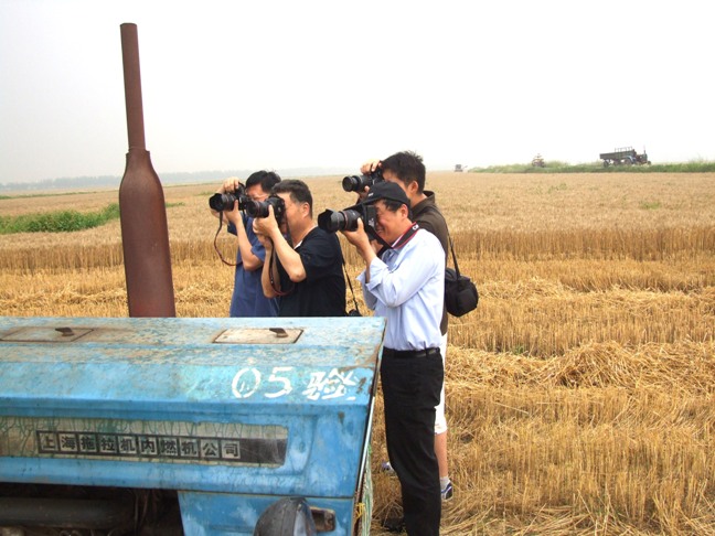 参加摄影写生的摄影艺术家及摄影爱好者们深入龙亢农场小麦抢收现场和现代农业高科技示范园区进行了实地摄影写生。