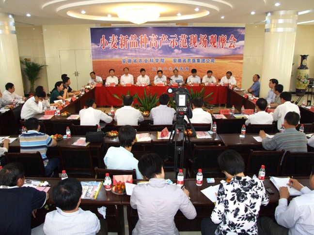 5月27日,省委常委、副省长赵树丛,省长助理邵国荷,省政府副秘书长程中才一行专程赶赴安徽农垦龙亢农场,出席参加安徽省农科院建院50周年暨皖北科技创新中心成立3周年成果展示活动。省农科院党委书记孟庆银,省农垦集团公司总经理李卓民,省农垦集团公司副总经理李家堂,蚌埠市及怀远县等有关领导共同参加了观摩活动。皖北科技创新中心是省农垦集团公司与省农科院在龙亢农场联合共建的研发平台。中心成立3年多以来,合作双方通过资源整合、优势互补、精诚合作,承担实施了国家粮食丰产科技工程、国家科技支撑、“863”、现代农业产业技术体系等国家、省级项目30余项,争取各类研发资金和自筹资金600余万元,吸引了50多位专家到中心创新创业。该中心在创建过程中,也整合了安农大、有关育种县和皖垦种业等单位的人才和农业资源优势,形成了安徽省小麦新品种育种基地。该中心在小麦、大豆、水稻科学研究、新品种选育和新技术推广应用上取得了丰硕的成果。实践证明,皖北科技创新中心是科企合作的新模式,在发展安徽现代农业、保障国家粮食安全等方面具有典型的示范带动作用,现已成为农业科技创新的载体,成为创新的要素聚集、创新成果培育、科技成果推广转化的平台。在省农科院建院50周年暨皖北科技创新中心成立3周年之际,省农科院和省农垦集团公司在龙亢农场联合举办小麦新品种高产示范现场观摩会,旨在示范展示自主研制的新品种、新技术,加快科技成果转化应用,为全省粮食生产提供科技支撑。