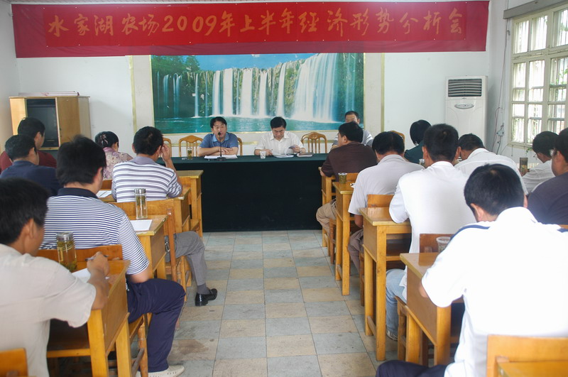 7月15日上午,水家湖农场召开经济形势分析会议,学习传达集团公司经济形势分析会议精神,研究部署下半年工作。全场分场以上管理人员及职工代表50余人参加了会议。