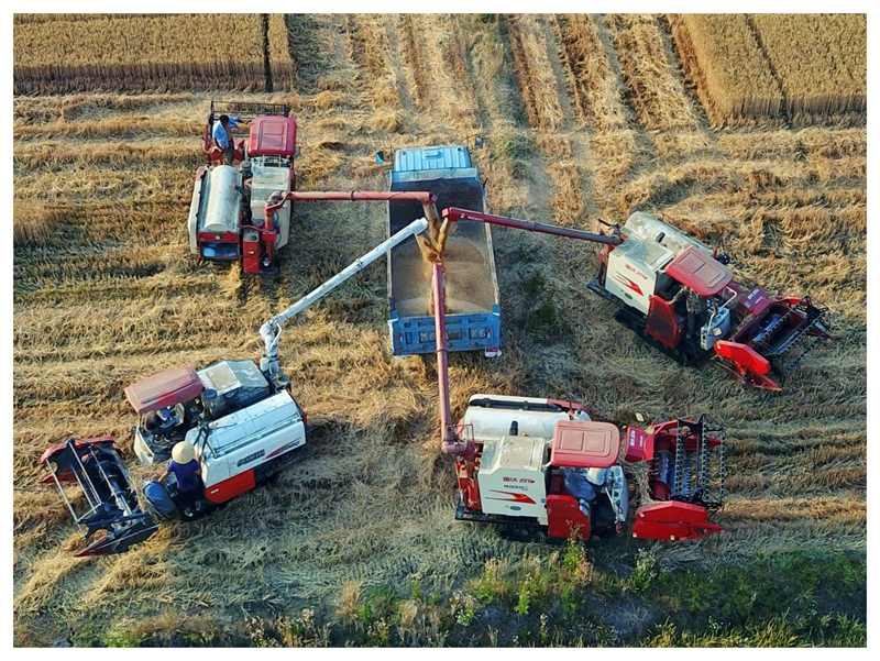 6月4日,农垦寿西湖农场5.47万亩小麦收割进入高峰期,当天有近百台收割机在金色的麦田里来往穿梭,机器轰鸣,麦浪翻滚,一派喜人的丰收景象。今年安徽农垦夏粮再获丰收,基本实现优质专用小麦种植面积“单种、单收、单储、专用”两个100%全覆盖的预期目标
