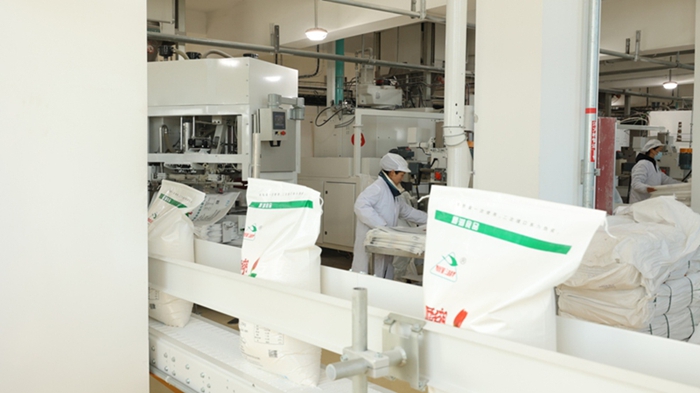雪里香食品科技公司一名生产工人将刚加工出的糯米粉包装入袋。(朱丽烨 摄)