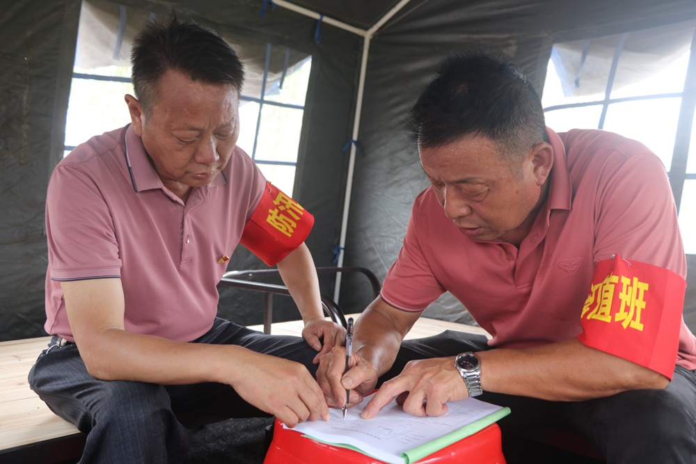 皖河农场防汛人员对巡堤查险情况进行登记。徐丽燕 摄