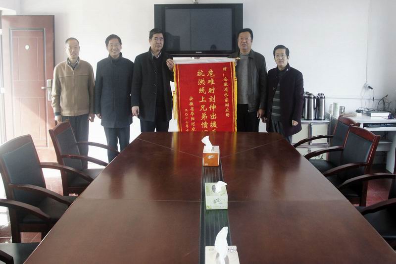 1129,华阳河农场场长谢广和、党委书记王洪领队到水家湖农场,赠送危难时刻伸出援手,抗洪线上兄弟情深锦旗,表达危急关头兄弟来援的感谢之情。水家湖农场领导刘国强、王计文、汪升洪热情接待。