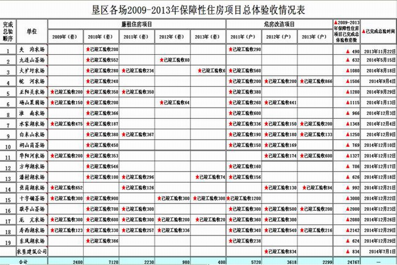 会上通报了安徽农垦保障性安居工程项目冲刺收官竣工总验情况:截至20141229日下午,按照符合政策、职工满意、经得起检查的要求和严谨规范的程序,在职工代表的参与见证下,垦区19个场及垦建公司的保障性住房项目24767套(户)竣工总验全面完成,规划打造崭新的职工群众居住环境、花园小区全部建成,向广大职工群众交出了一份满意的答卷,基本实现了垦区楼房化、花园式、全覆盖的新型城镇化蓝图。会议充分肯定了集团领导小组成员单位在垦区保障房建设6年奋战中的通力合作、艰辛努力和优质服务,要求各成员单位根据各自分工,继续督导各场完成保障房竣工总验后的整改扫尾工作,同时部署了总结工作和后续任务。(朱钰霖