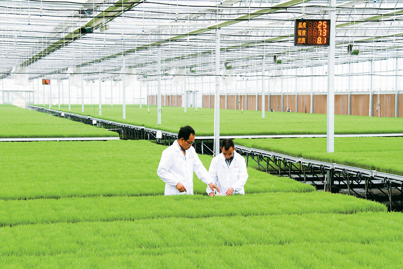 省农垦龙亢农场牢记嘱托,抢抓机遇交出现代农业崭新答卷运用农业物联网技术,建成智能温室大棚5000平方米,可随时调节光、温、水,专门承担水稻、特种瓜果蔬菜的培苗。图为农技人员正在为水稻秧苗做体检(习近平总书记视察安徽两周年特别报道,安徽日报201842506-07版,李峰摄)