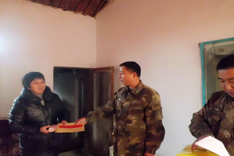 时值岁末年初,1217,明光市人武部肖运金副部长率政工科负责人一行,到白米山农场军属郑双印、李怀玲夫妇家中走访,并送去慰问金。