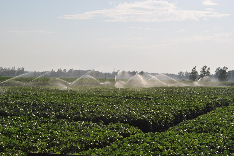 86,位于明光市的安徽农垦潘村湖农场,自动灌溉设备正在浇水。连日高温晴热,当地旱情显现,该农场组织灌溉机械抗旱浇水,力保3万余亩在地作物墒情充足。(安徽日报20138701版,本报通讯员杨登宏摄)
