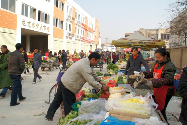 龙亢农贸大市场是依托龙亢农场原农贸市场和预制品厂地块改扩建的项目工程。该项目是龙亢地产开发有限公司充分利用蚌埠龙亢农场综合改革实验区平台,结合农场城镇开发实际,具体运作的一个项目内容。新建成的农贸大市场占地面积2.5万多平方米,配套门面房70 套、固定摊位132个,布局科学合理,功能分区明确,实行分行就市管理,能够满足1000余经营户同时进行农副产品批发零售。