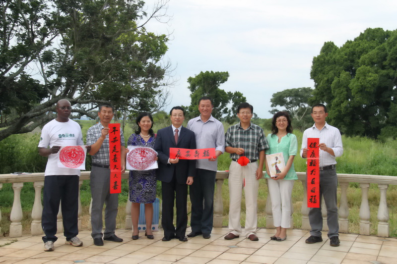 262013年春节将至,中国驻津巴布韦大使林琳、商务参赞韩兵携夫人来到安徽农垦皖津公司,慰问中方留守员工,送来对联年画,并参观了温亚尼农场办公生活区和在地玉米、大豆。
