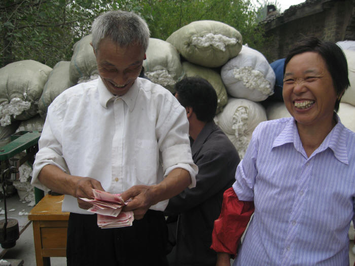 1010日上午,安徽农垦皖河农场红旗分场棉农何银伢在当地一家棉花企业交售棉花,他交售的籽棉重300多公斤,收购价为3.13/市斤(衣分38.5%、水分13点以内),单笔结算现金2037元。何银伢说:“政策好、天帮忙、人努力,市场旺,今年是个丰收年!”