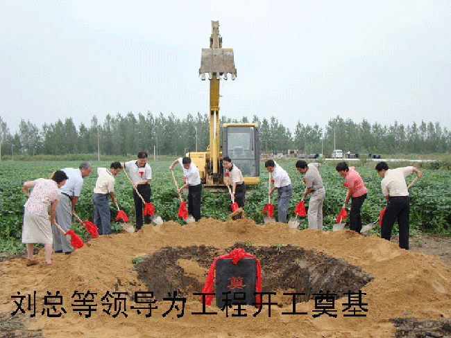 夹沟农场场长韩大鸣,承建单位——皖垦建筑公司党委书记刘会满及监理单位负责人分别在开工典礼上讲了话。在喜庆的爆竹和音乐声中,各位来宾和农场领导为工程开工奠基。