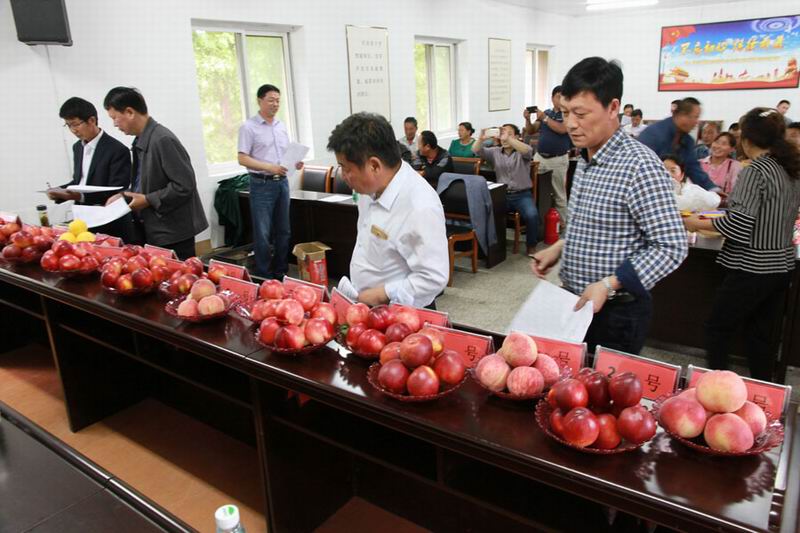 524,砀山果园场举办优质桃种植能手劳动竞赛活动,各基层分场选送的18名职工精选鲜桃同台参赛PK