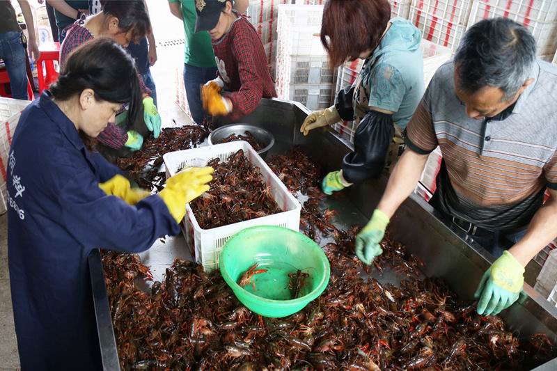 谢广和一行在洋湖交易中心看到,一车车小龙虾排队待售,商贩们忙着过秤,场面十分火热。收购点内分拣、称重、包装有条不紊,刚收购的小龙虾经分类堆放装车,通过武汉、浙江、江苏等地客商第一时间销往全国各地。洋湖办事处党委书记杨光介绍说,龙虾通过交易中心集中销售,统一规范市场,养殖户货比三家,价高者得,提供稳定的销售平台,维护了农户利益,促进了农工增收。洋湖合作社总经理高胜华讲解了虾稻专业合作社独特的组织架构、小龙虾交易市场建设与规范管理的具体措施。高胜华说,合作社通过微信群每天网上公布交易价格,使养殖户及时了解行情,以交易中心为平台,将龙感湖小龙虾销往全国。