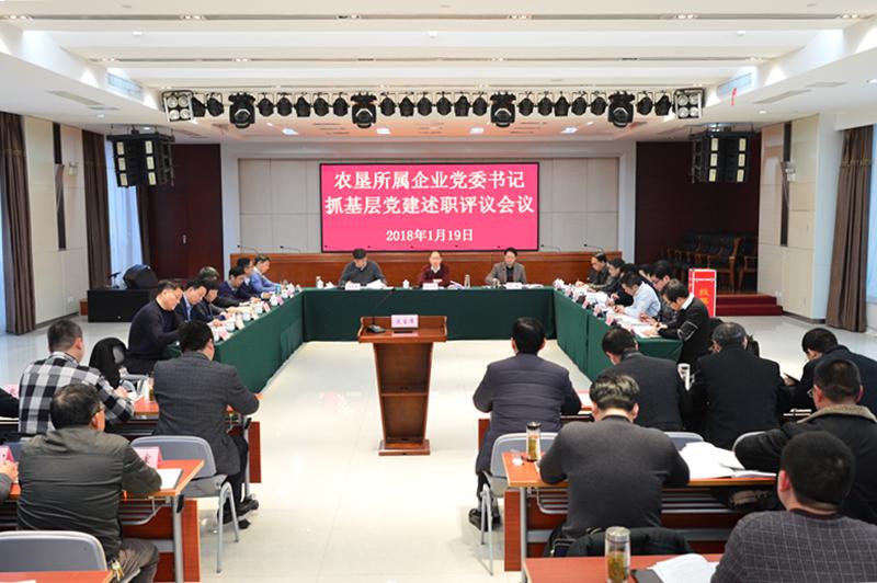 119,安徽农垦集团举行2017年度二级企业党委书记抓基层党建工作述职评议会。党委书记、董事长詹先豪出席并作讲话,党委副书记、总经理刘超主持会议,党委副书记王良贵对4户企业党委书记会上述职作逐一点评。集团公司领导及机关各部室负责人、述职企业党委负责同志、基层党员代表参加会议,并对述职人员进行了民主评议;书面述职单位党委书记、各单位党群工作部负责人列席。