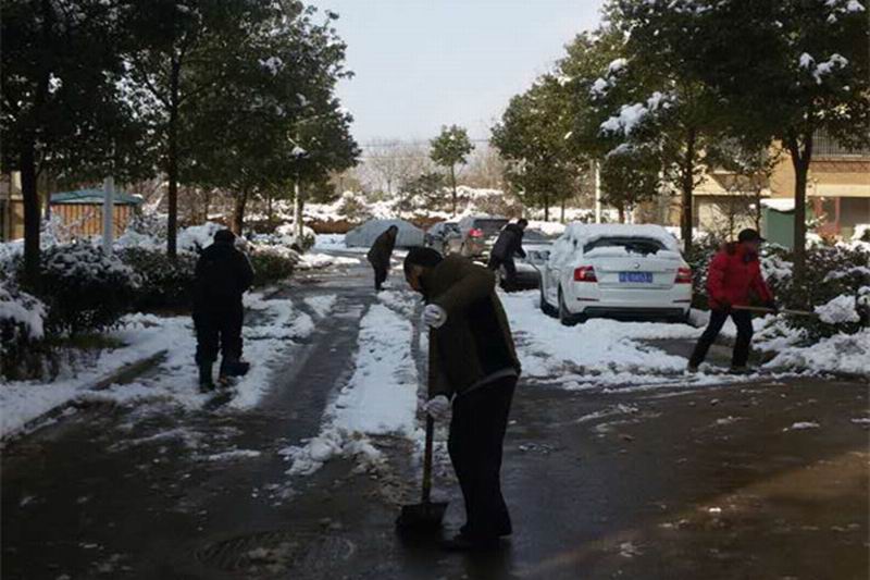122,祠山岗茶场一场暴雪如约而至,东花园职工小区盖上了厚厚一层积雪,严重影响到社区居民生活。23日上午,场部机关干部和物业办、松林居委会员工放弃双休日,纷纷自带工具走向小区东门、南门、广场及主干道,扫净小区积雪、消除安全隐患,方便了居民出行。(童朝伟)