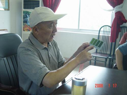 根据叶色深浅程度来确定水稻氮肥施用量是一种经济合理的施肥方法,但叶色“深”与“浅”程度难以用语言文字表述清楚,针对这一问题,朱教授给我场农技人员每人带来一张目前国际通用的水稻施肥“比色卡”,并深入田间地头,实地演示,手把手地教会每个农技员如何使用。