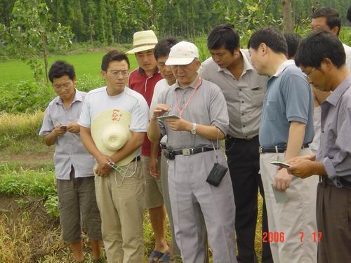 专家送来比色卡 科学施肥不用怕(图文) ----扬州大学朱庆森教授来大圹圩农场进行机插水稻高产栽培技