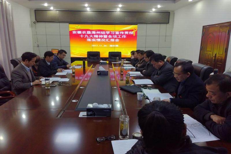 1124,安徽农垦集团副总经理陈仁虎偕经合部负责人一行,在潘村湖农场举行皖东四场学习宣传贯彻党的十九大精神督导汇报会。潘村湖、大圹圩、方邱湖、白米山四个农场负责同志参加会议。