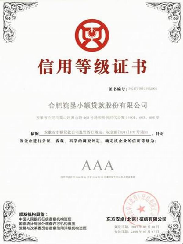 皖垦小贷:连获AAA信用等级