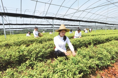 图为敬亭山茶场职工正在采茶。