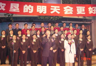 晚会在集团公司党组全体领导和黄山大厦客房部的大合 唱中拉开序幕。《没有共产党就没有新中国》、《走进 新时代》将晚会气氛从开始就推向高潮。应观众要求, 他们又合唱一首《年轻的朋友来相会》,获得阵阵喝 彩。晚会既有民族风韵的舞蹈《好日子》、《渔家姑娘 在海边》,也有节奏感强烈的现代舞:街舞《啪啦、啪 啦》、韩式舞蹈《绕、绕、绕》,还有异域风情的印度 舞《天竺少女》,都具有一定的专业水准。小品《三大 于五》,描写某一著名电影明星,平时均下榻五星级宾 馆,这次回乡演出,却住进三星级的黄山大厦,而心怀 不满,可是通过黄山大厦服务员体贴入微的服务,使这 位大腕终于信服了黄山大厦的优质服务,故事情节虽无 起伏跌宕,而通过精彩的表演,才揭开三大于五的谜 底。新长城大酒店经理办创作的《服务从心开始》,利 用电脑幻灯演示,角色配音,叙述了一个动人的故事, 节目颇有创意。参加晚会的集团公司领导和各场场长, 或唱或跳,一展风采,赢得阵阵掌声,全场欢声雷动。 平时操刀掌勺的黄山大厦后堂大厨们,今天可出尽了风 头,他们表演的时装《秋日的激情》,真的帅呆了!最 后晚会在新长城大酒店员工的健身舞《青春的旋律》中 胜利结束。(方文华)