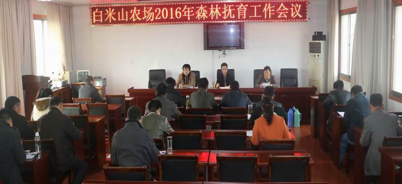 324,白米山农场召开专题会议,安排部署了2016年森林抚育项目工作。场长邱达到会作总结,副场长王仕超主持会议,总工程师周尤马及相关科室、分场负责人和技术人员参加会议。