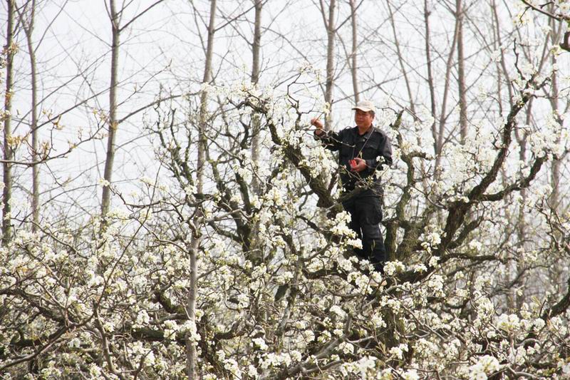 连日来,砀山果园场职工抓住最佳时机进行授粉,梨园里一派繁忙景象。据该场果树专家介绍,梨花自花不孕,只有在盛花期进行人工授粉,才能保证坐果率和优果率,场里上月底进行了动员部署,制定工作方案,做好管理服务,指导职工授粉,预计全场梨花授粉工作6日即可结束,保障了翡翠牌酥梨名果高产增收。(魏晓清等)