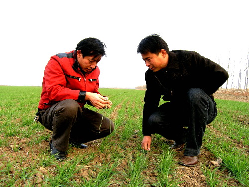 12月4日下午,高级农艺师李先金再次来到潘村湖农场四分场职工戴夕文的承包田察看麦苗长势,并结合苗情和天气情况就当前麦田管理进行面对面地指导。为开展好新一轮小麦高产攻关活动,作为安徽省现代农业示范场之一,自今年秋种以来,该场严格按照小麦高产栽培规程,组织多路科技小分队定期赴职工家庭农场进行农技巡回服务,受到广大农工欢迎。(杨登宏摄)