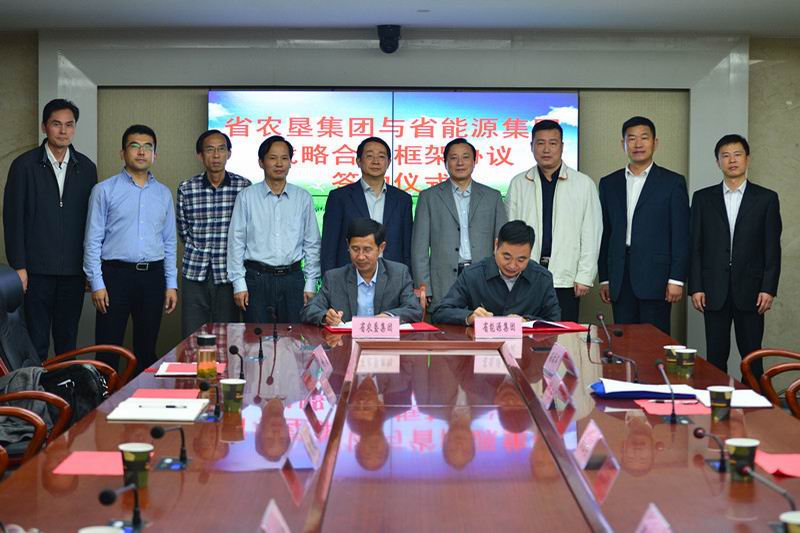 1020,安徽农垦集团与皖能集团签署战略合作协议,着力深化省属企业间的产业合作,有效利用农垦风、光、电资源,共同促进安徽新能源产业发展。农垦集团总经理刘超、副总经理陈仁虎,皖能集团总经理朱宜存、副总经理施大福共同出席签约仪式。