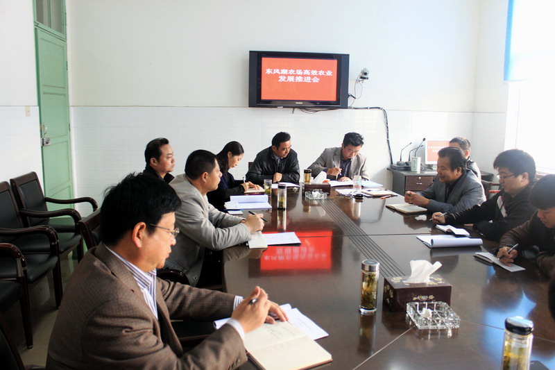 1112,东风湖农场召开专题会议,部署推进高效农业发展,党委书记涂玉龙到会作讲话,副场长杨洪善主持会议,场相关部室和各农业分场负责人参会。