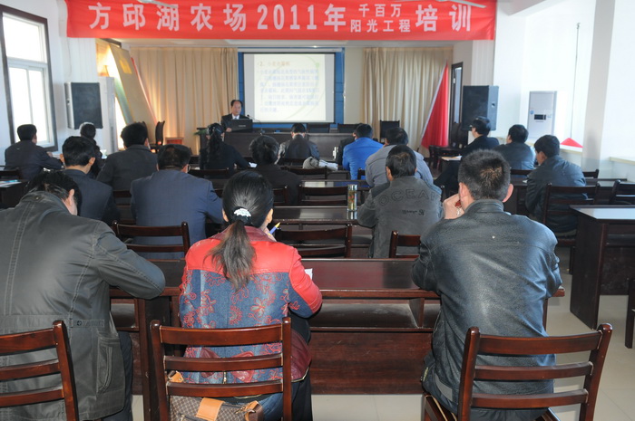 329,方邱湖农场2011百千万阳光工程培训正式开班,邀请农技推广研究员朱永平和安徽农业大学马铃薯课题组教授黄振华前来授课,主要讲授小麦高产栽培与在地小麦中后期田间管理,马铃薯高产栽培与病虫害防治技术,洋葱高产栽培技术措施。