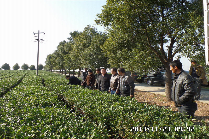 1128上午,祠山岗茶场副场长徐言东率各分场负责人和承租大户来敬亭山茶场交流茶园冬管工作,场领导陈雪松等陪同。
