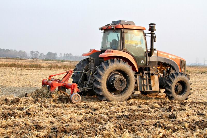 土地深松机是农场千牛农机合作社由现有机型改造而成,深松深度25-30cm,行距45cm(以不堵秸秆为准进行调整),每天深松约200亩,深松后直接旋耕、无需晾地。耕种技术路线:收割机配置秸秆粉碎抛洒装置秸秆二次粉碎还田深松播肥旋耕1-2催芽播种镇压开沟喷灌。