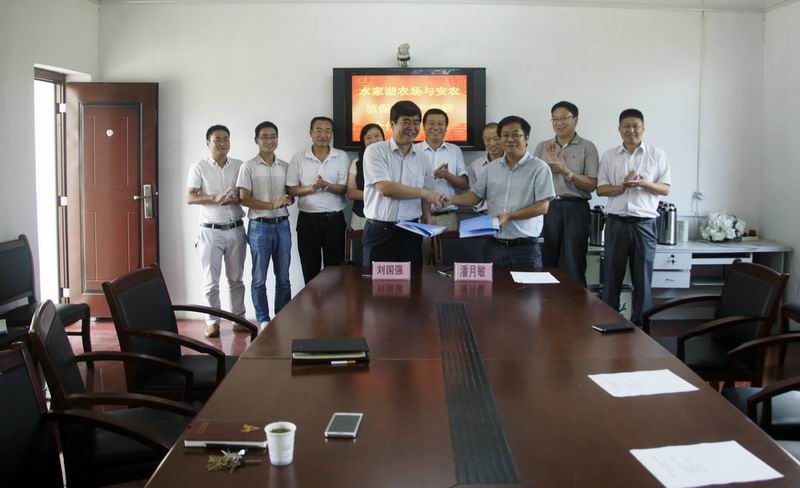 826,安徽农垦水家湖农场与安徽农大植保学院签订了产学研合作协议。农场党委书记刘国强、副场长汪升洪、副场长董梅与安徽农大植保学院党委书记檀根甲、副书记陈先玉、副院长潘月敏举行了会谈,并共同为共建基地揭牌。
