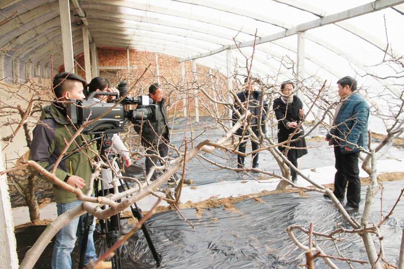 18,中央电视台农业频道记者走进安徽砀山果园场,专题采访了现代农业高新技术应用工作,副场长钱超接受专访时着重介绍了设施果园应用纳米转光塑料薄膜保温的情况。