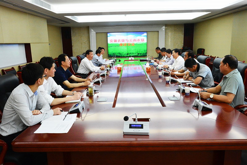 42830日,由云南省农垦总局副局长李民带队,云南省政府研究室农村处、农垦总局政研室和西双版纳、临沧、普洱、文山垦区主要负责人组团来安徽垦区调研交流。安徽农垦集团董事长、党委书记田文俊,总经理、党委副书记李卓民,副总经理刘超、陈仁虎会见了云南客人。集团办公室、农水科技部、经济开发合作部负责人参加座谈。