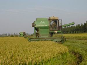 从10月14日开始,大圹圩农场秋收工作全面铺开。 今年秋收由于天气等因素,水稻普遍晚熟,收割期 比正常年景要推迟一周左右。近日来,农场呈现出 一片繁忙景象。马达轰鸣,机声欢唱,东风收割机 在金色的稻海里收获着希望。家庭农场职工满怀丰 收的喜悦,全力以赴,抢抓季节,力争使到手的粮 食颗粒归仓。场“三秋”指挥部领导每天亲临一线 指导工作,机关及直属单位在“三秋”期间将取消 双休日,全力为家庭农场提供后勤服务和保障。如 天气正常,全场1.7万亩水稻可望在11月5日前收割 完毕。