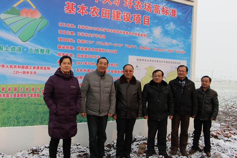 130,天长副市长刘正田率国土资源局、农委等部门单位负责人,现场验收了安徽农垦大圹圩农场实施的15240亩省级高标准基本农田建设项目,场领导汪登松、童俊全程参加。