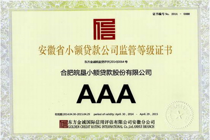 皖垦小贷公司:跻身安徽同行AAA信用等级