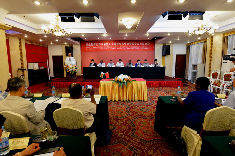 会上,张武扬在致辞中充分肯定了皖津合作取得的显著成绩和联盟抱团走出去的经验做法。他指出,互利共赢、共同发展的氛围在津巴布韦日益浓厚,这为我们未来合作奠定了坚实的基础。他表示相信,在皖津各有关方面的共同努力下,双方共同利益的蛋糕将越做越大,合作双赢的前景会更加美好。李卓民总结了联盟成立一年以来取得的成效,介绍了联盟主要工作进展情况。津巴布韦国防部少将、皖津公司副董事长伊柯阮巴就津巴布韦投资环境和投资政策作了推介说明。