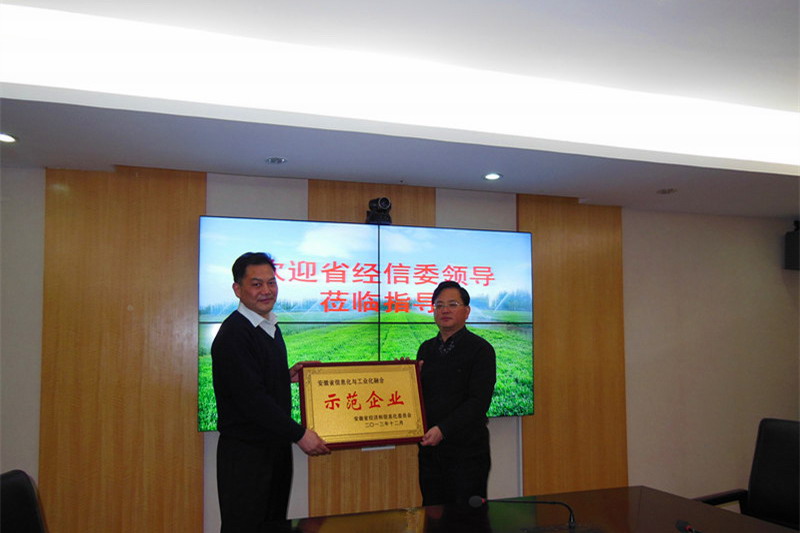 为大力推进安徽信息化与工业化融合典型示范推广,由省经信委牵头组织评选的全省100两化融合示范企业于日前新鲜出炉,省农垦集团名列第二。116日,省经信委信息化推进处处长石象斌一行前来授牌并调研指导了农垦信息化建设工作。集团公司副总经理李家堂及农业产业化处负责人参加会谈。