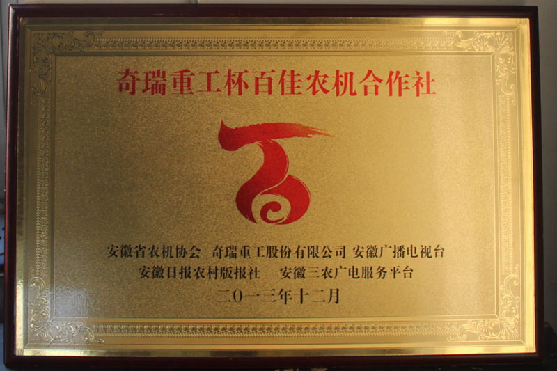 1224,由省农机协会主办,奇瑞重工、省广播电视台、安徽日报、安徽三农广电服务平台等单位联合协办奇瑞重工杯全省百佳农机合作社揭晓并授牌。安徽农垦正阳关农场正农农机合作社榜上有名。