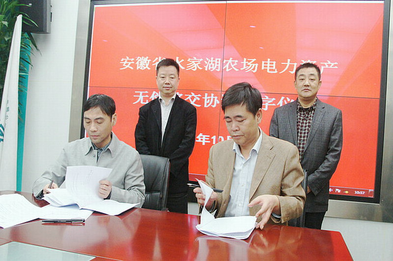 1031上午,安徽农垦水家湖农场与国家电网长丰供电公司正式签订水湖管理区电力资产移交协议,至此,该场涉及定远、长丰两县的电力资产移交工作圆满完成。农场场长刘国强、党委副书记邵乃昌,长丰供电公司总经理张宇峰、副总经理黄自祥以及双方相关部门负责人参加座谈。