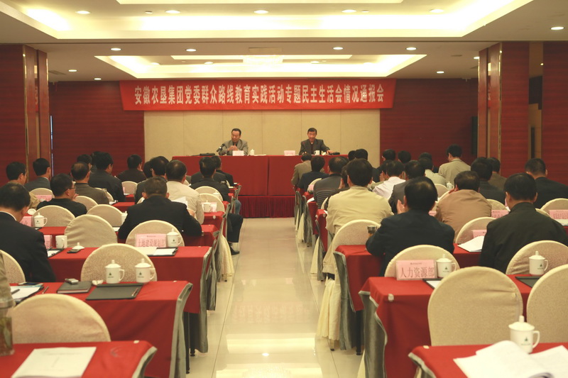 1025下午,安徽农垦集团党委召开群众路线教育实践活动专题民主生活会通报会,党委书记、董事长田文俊作情况通报,党委副书记、总经理李卓民主持会议。