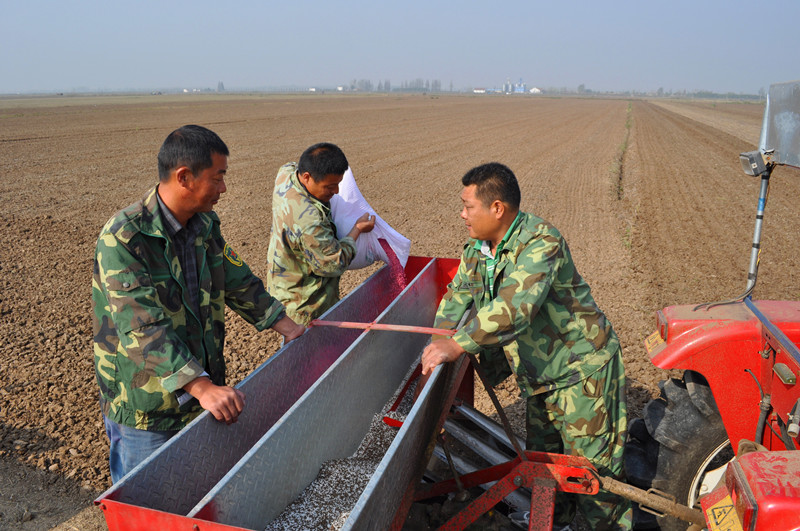 1012,在安徽农垦潘村湖农场二分场秋种现场,农技人员正在指导职工家庭农场进行精量播种和配方施肥。眼下正值沿淮麦区冬小麦最佳播期,连日来,该农场组织10多支农技小分队深入田间地头,面对面指导职工按照小麦高产栽培技术规程开展秋种,确保全场新一轮3万亩大田小麦高产攻关各项增产技术措施落到实处。(杨登宏)